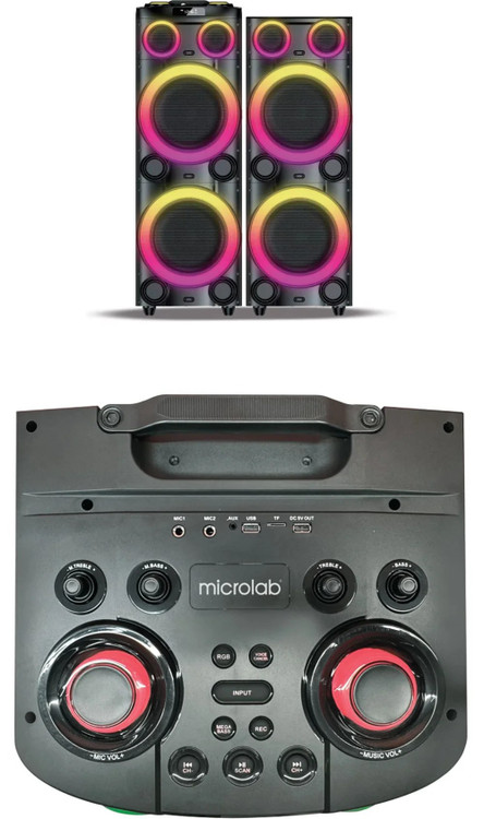 ریموت کنترل, میکروفون بی سیم, دفترچه راهنما, کابل نور و صدا