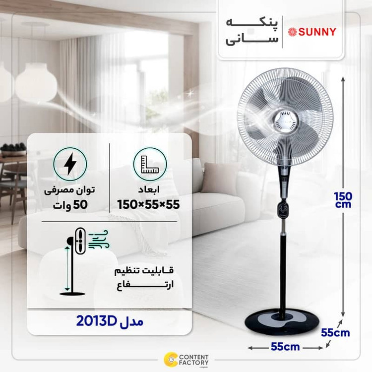 پنکههای ایستاده جزو محصولاتی باکیفیت و با قدرت خنککنندگی مناسب هستند که در اغلب موارد برای محیط خانههایی با ابعاد 50 الی 100 متر کاربردی به شمار میروند. در این میان پنکه سانی مدل 2013D هم از این قاعده مستثنی نیست و با وجود قابلیتهایی همچون امکان تنظیم ارتفاع تا 100 سانتیمتر، مجهز به ریموت کنترل، قابلیت گردش 180 درجه و افقی، سرعت گردش پروانهها تا 1200 دور در دقیقه، حجم باددهی 62 متر مکعب در دقیقه و وزن 6.9 کیلوگرمی جزو گزینههای مناسب برای فصول گرم سال به حساب میآید. این محصولی یکی از گزینههای محبوب بازار با عملکردی کم صدا است که از کنترل از راه دور و تایمر قابل برنامهریزی برخوردار است. همچنین لازم است بدانید که عملکرد این پنکه با توجه به وزنی که دارد کاملا باثبات و متعادل است. لازم به ذکر است که کلیهی قطعات این کالا به شکل جدا جدا ارسال میشود و کاربر خود باید آن را نصب و راهاندازی کند.